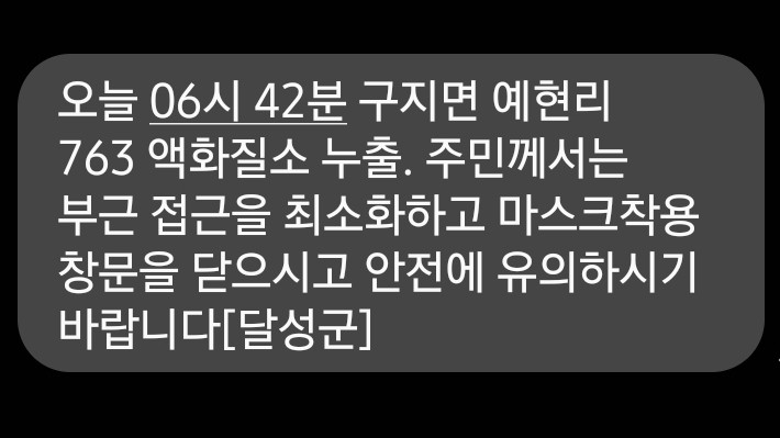 한편 달성군은 주민들에게 사고 장소 부근에 접근을 최소화하라는 안전 안내 문자를 보내기도 했습니다.