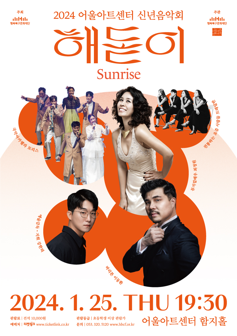 '2024 어울아트센터 신년 음악회 해돋이' 공연이 1월 25일 목요일 저녁 7시 30분 대구 북구 어울아트센터 함지홀에서 펼쳐집니다.