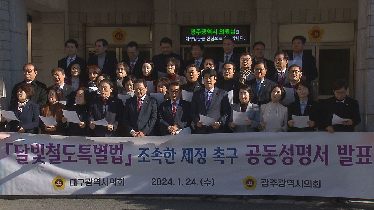 두 의회는 공동 성명을 내고 "달빛철도는 지역 간 화합을 이루고 대구와 광주를 동서로 이어 지방소멸을 극복할 수 있는 현실적 대안"이라며 "특별법을 즉각 제정하라"고 촉구했습니다.
