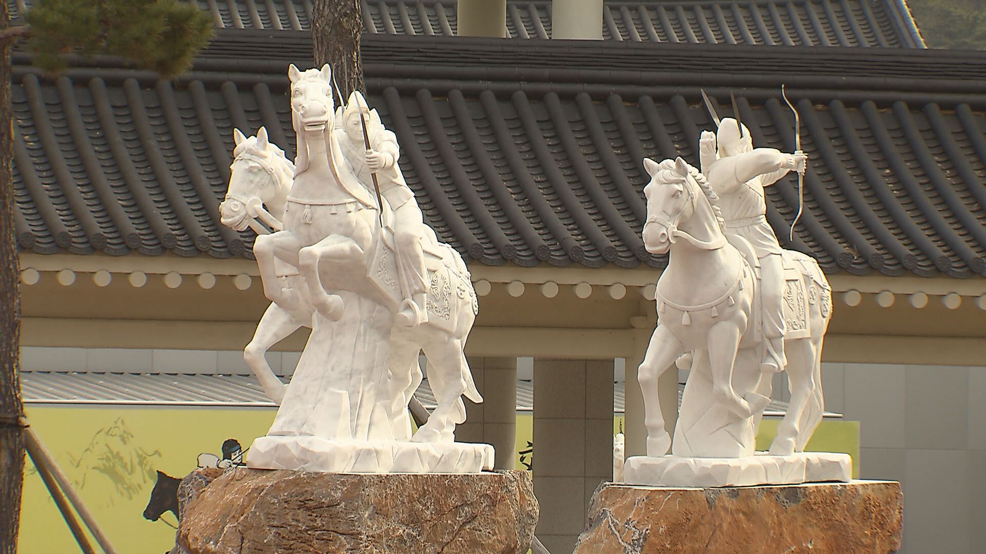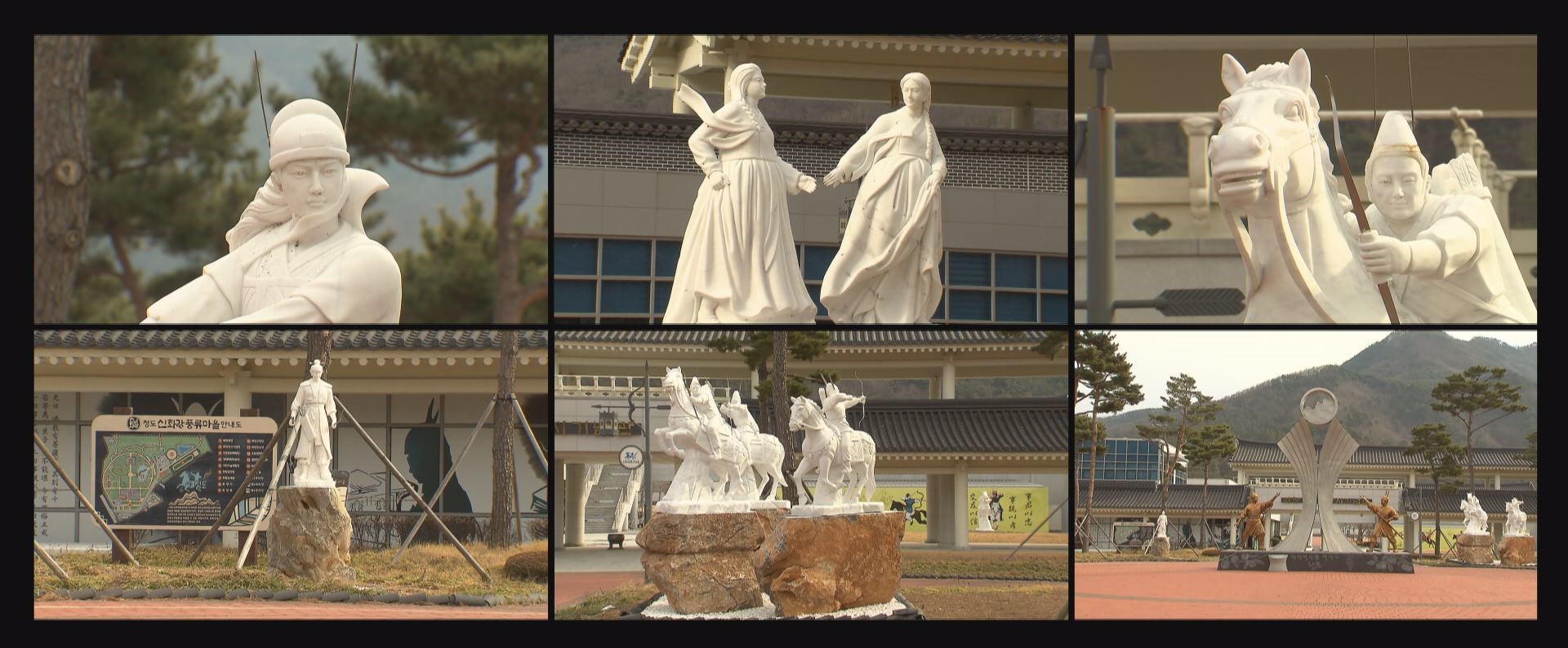화랑정신을 계승하기 위해 지어진 테마파크에 하얀 조각 작품 19점이 전시돼 있습니다.