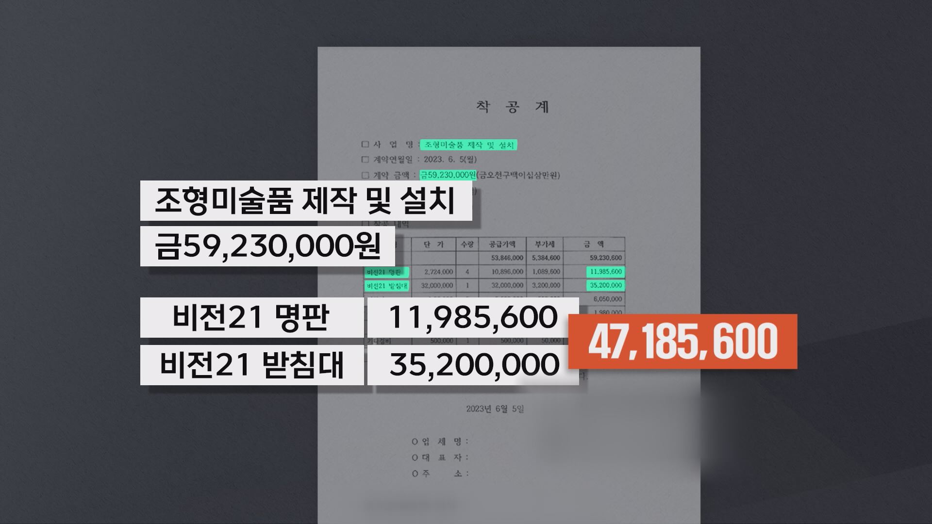청도군에 제출한 산출 내역서를 보니 '비전 21' 작품의 명판과 받침대 명목으로 4천7백여 만 원을 청구했습니다.