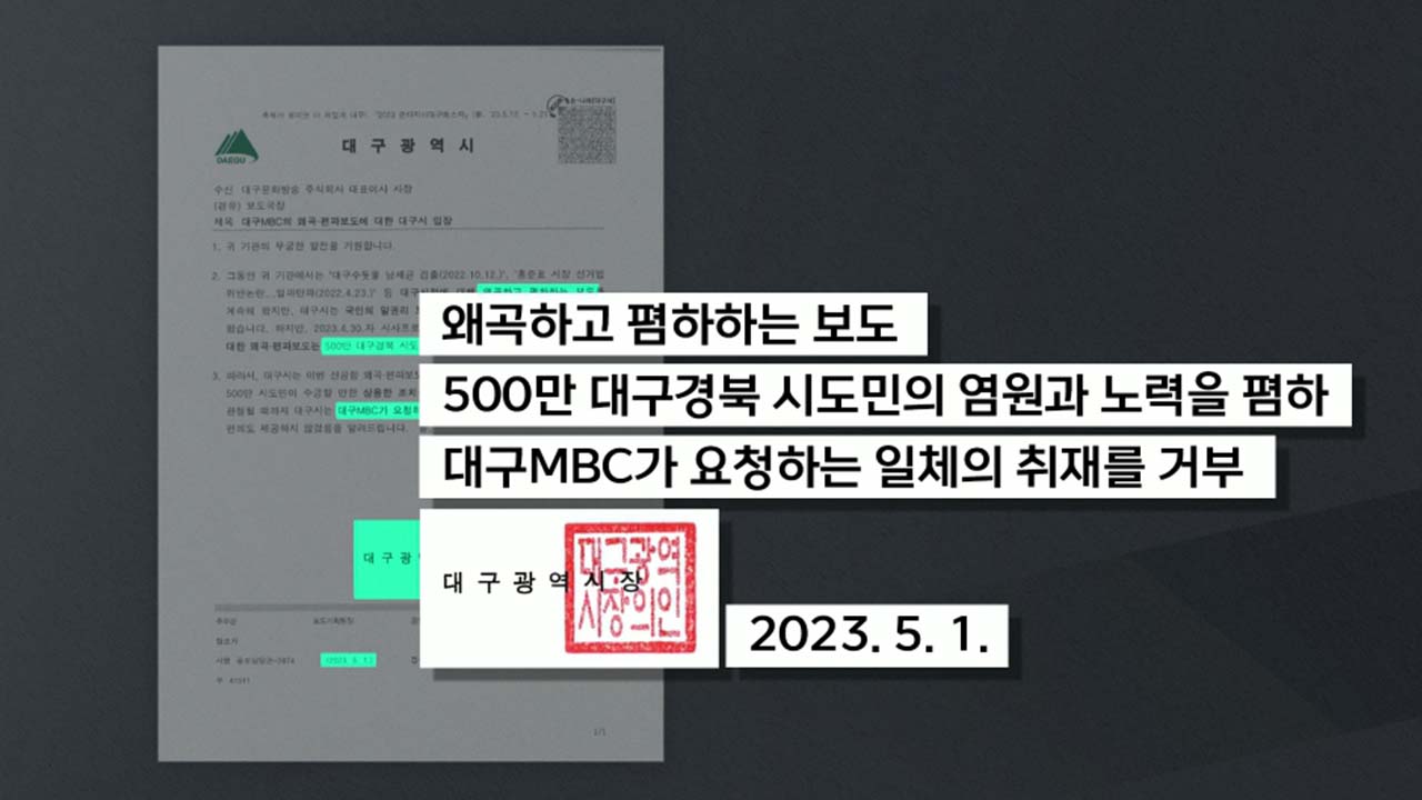 같은 날 대구시는 대구시장 관인이 찍힌 취재 거부 공문을 작성해 대구MBC에 보냈습니다.