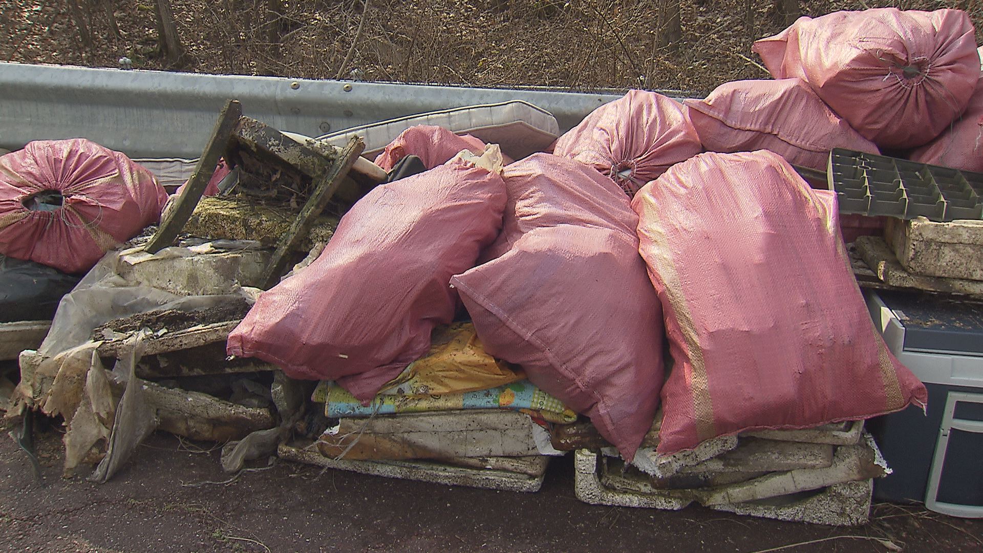 도로 비탈면 쓰레기로 '반짝반짝'···차 세울 수 있는 곳마다 폐기물 더미