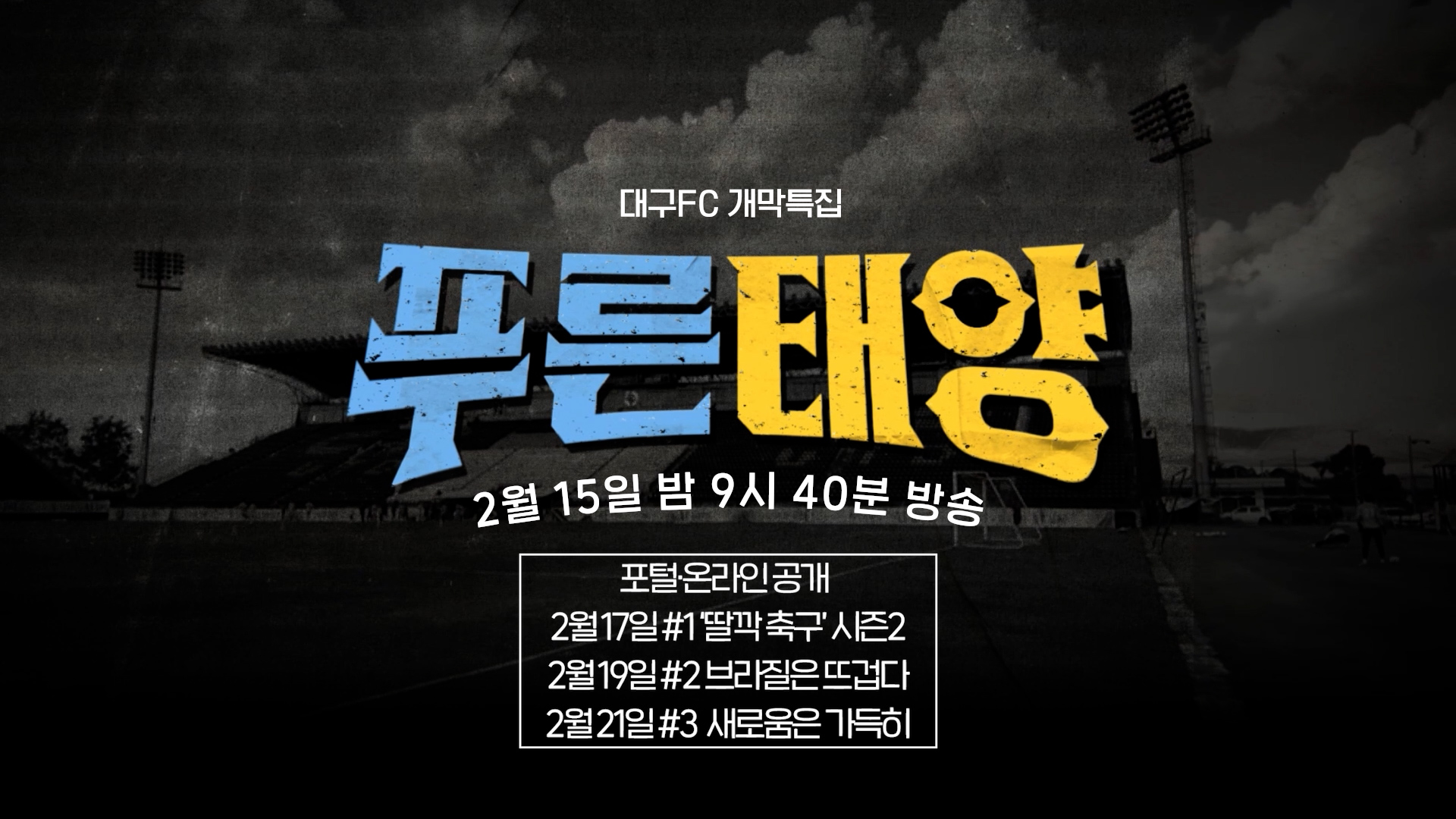 지난해 이른바 '딸깍 축구'로 조명받았던 최원권 감독의 2번째 시즌에 대한 기대감과 완전체로 시즌을 같이 준비했던 브라질 선수들의 이야기, 젊은 팀 대구FC의 새로움은 또 어떻게 함께했는지를 태국 현지 취재를 통해 전하는 대구FC 개막 특집 '푸른 태양'은 2월 15일 밤 9시 40분 대구MBC를 통해 최초 방송됩니다.