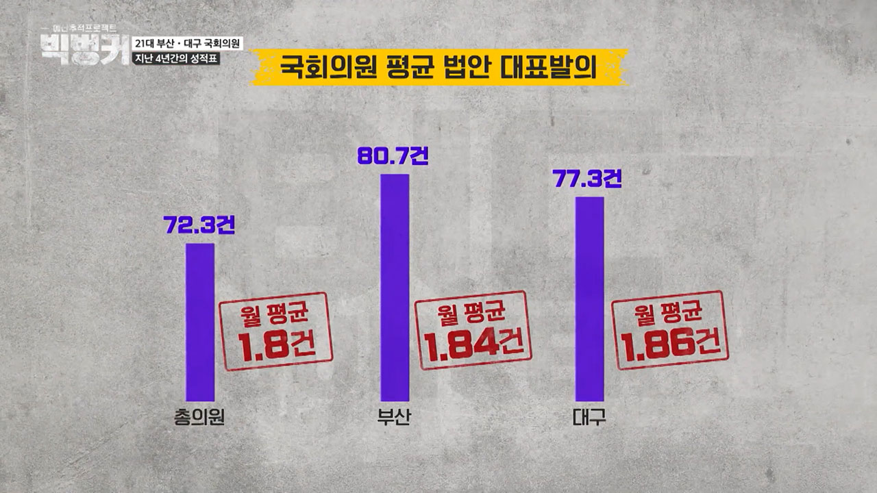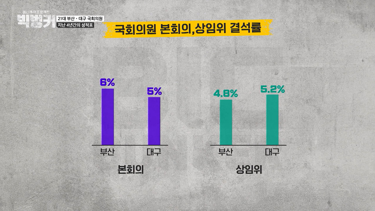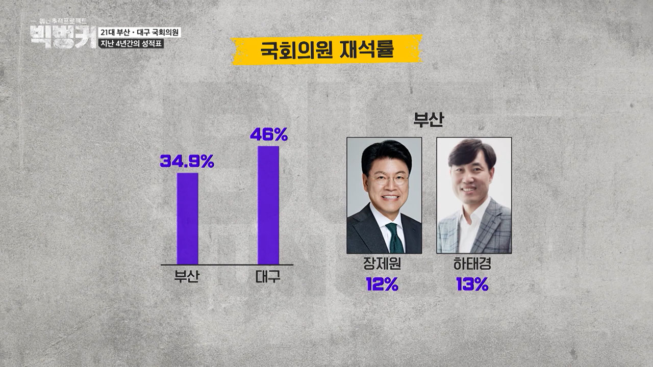 2024년 4월 10일이면 제22대 국회의원이 뽑힙니다. 21대 국회의원의 임기 4년이 거의 끝나간다는 이야기이기도 합니다. 대구를 선거구로 하는 국회의원은 12명, 부산을 선거구로 한 국회의원은 18명인데요, 이 30명의 지난 4년은 어땠을까요?