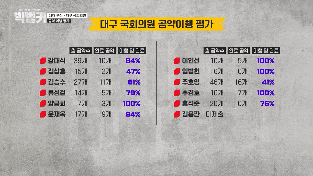 대구·부산의 국회의원들은 자신의 공약을 얼마나 지켰을까?