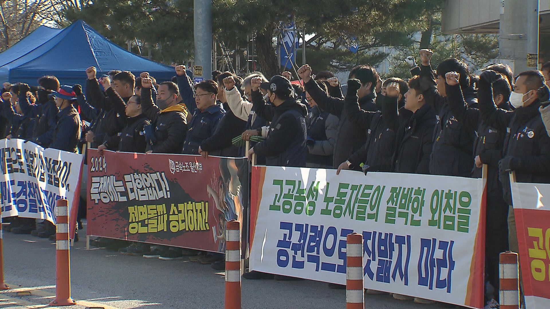 노조는 법원의 가처분 결정에 이의제기했으니 그 결과가 나올 때까지 강제 집행을 미뤄달라고 강하게 요구했습니다.