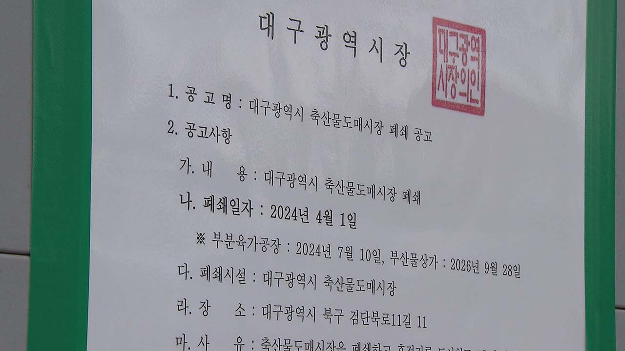 2024년 4월 1일로 예고된 대구시의 축산물도매시장 폐쇄 조치가 법원에서 제동이 걸렸지만 대구시가 폐쇄를 강행하고 있어 논란입니다.