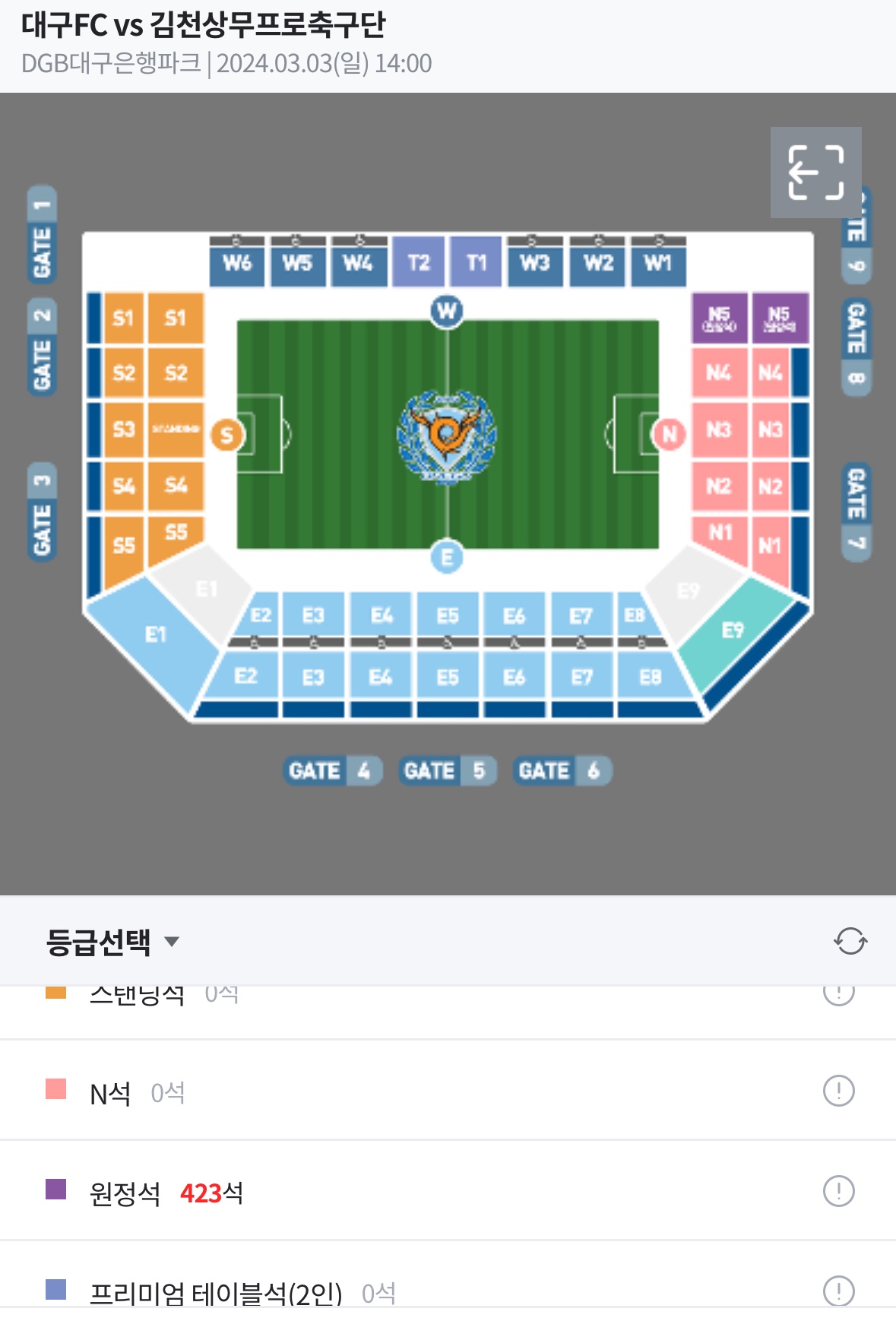 (사진출처-대구FC, 온라인 예매화면 캡쳐)