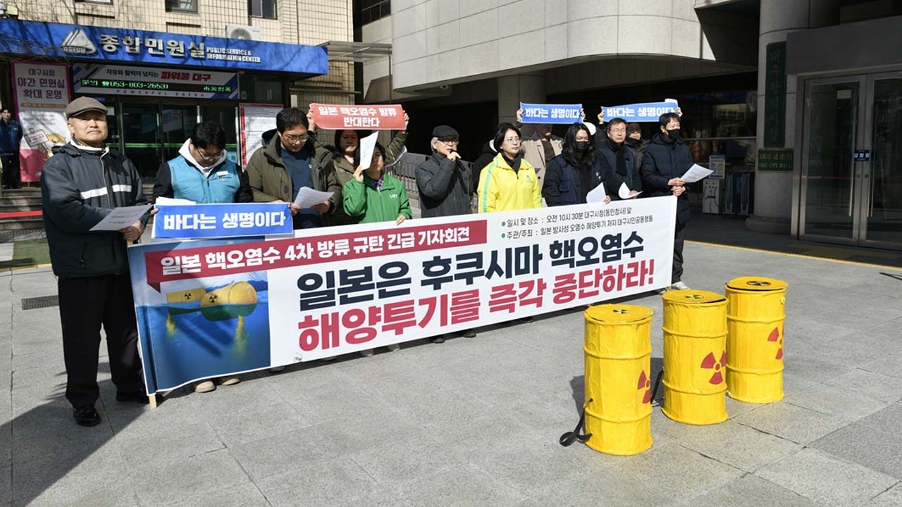 대구환경운동연합 등 '일본 방사성 오염수 해양투기 저지 대구 시민공동행동'은 2월 28일 오전 대구시청 동인청사 앞에서 기자회견을 열고, 일본 원전 방사성 오염수 4차 방류를 규탄했습니다.