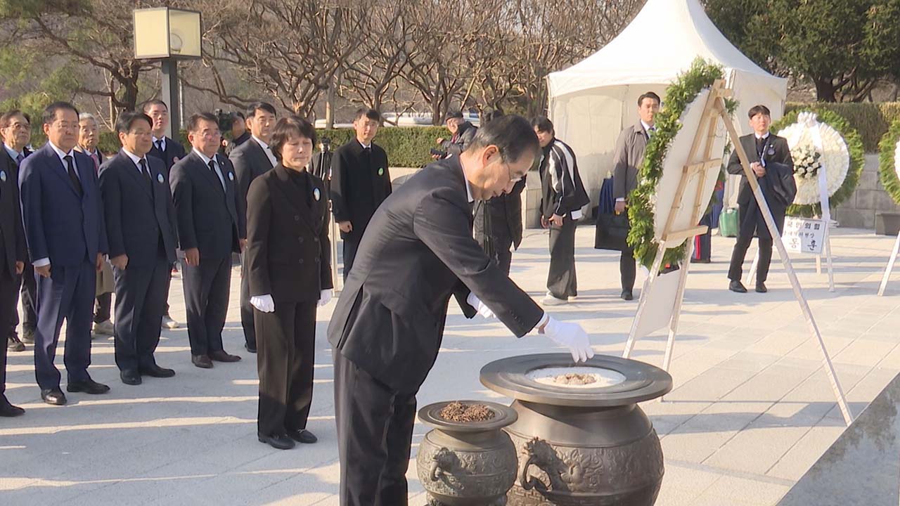 '동방의 밝은 빛이 되리라'를 주제로 열린 기념식에는 한덕수 국무총리를 비롯해 각계 대표, 2·28 민주운동 참여자, 유족 등 1천여 명이 참석해 기념 공연과 기념사, 2·28 찬가 제창 순으로 진행됐습니다.