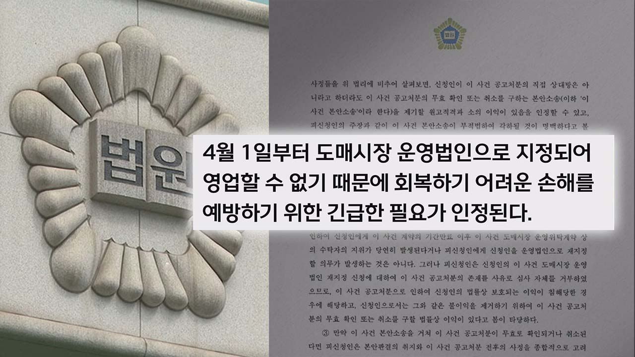신흥산업은 대구시의 일방적인 폐쇄 공고에 제동을 건 법원 결정마저 따르지 않는 것이라고 반발하고 있습니다. 재판부가 "대구시가 도매시장 운영법인 재지정 신청에 대하여 폐쇄 공고 처분을 이유로 심사 자체를 거부하였으므로 신청인의 법률상 이익이 침해당한 경우다"라고 판시했기 때문인데요.