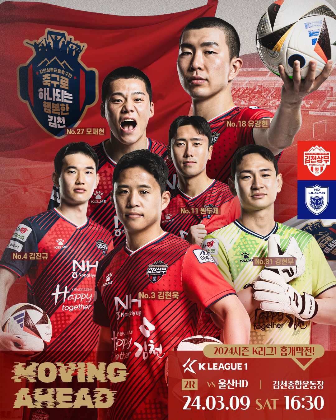 3월 9일 오후 4시 반 김천종합운동장에서 펼쳐지는 하나은행 K리그1 2024 2라운드 울산HD와의 홈 개막전을 앞둔 김천상무는 K리그2 우승팀이라는 자존심을 걸고 K리그1 우승팀을 상대로 2연승에 도전합니다.