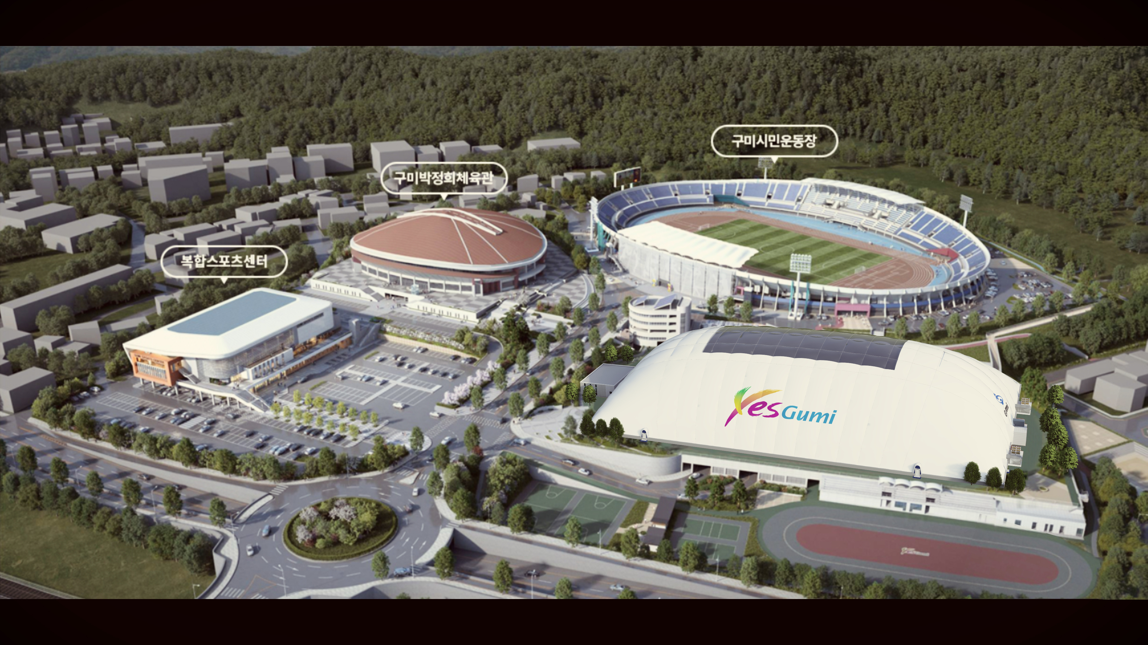 구미시는 에어돔이 들어서는 보조경기장은 도심 속 모든 인프라가 완비된 곳이라고 밝혔습니다.