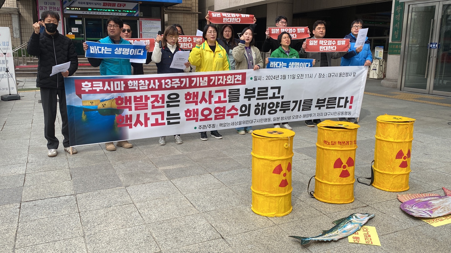 핵 없는 세상을 위한 대구시민행동은 3월 11일 대구시청 앞에서 기자회견을 열고 "13년 전 오늘 발생한 후쿠시마 핵사고는 지금도 수습할 수 없는 참사"라며 "핵발전을 중지하고, 안전하고 지속 가능한 에너지로 전환해야 한다"고 강조했습니다.