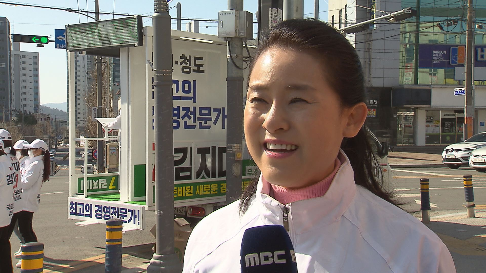 김지미 영천시청도군 무소속 후보 "시민이 살고 나라가 살려면 경제가 살아야 하는데 저는 창업에서부터 29년간 경영을 해온 여성 전문 경영자입니다. 그런 여성 전문 경영자의 노하우로 우리 경제를 살리는 데 한 번 최선을 다해보겠습니다. 특히 기존에 오래된 산업단지들이 많은데 그런 노후단지와 신산업단지의 균형을 맞춰서 기업이 머물면서 사업을 확장할 수 있는 지역으로 만들어보고 싶습니다."