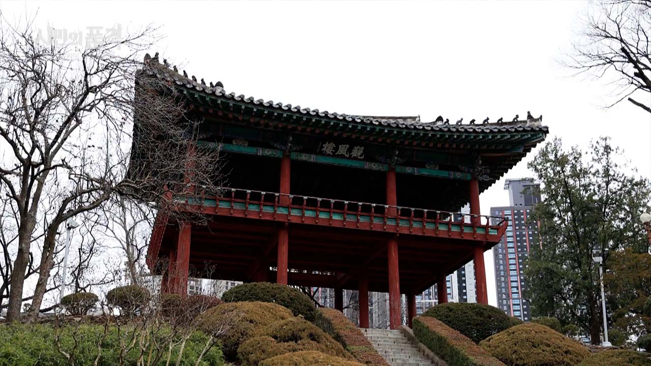 정인성 영남대학교 문화인류학과 교수 "달성공원이 사람들이 가장 많이 모이는 곳이고, 경상감영이었던 대구읍성은 일제강점기에 파괴되고 도시화했기 때문에 그나마 공간이 보존되었던 달성공원에 기념비를 옮기거나 세울 수밖에 없었습니다. 또 하나 눈여겨 보실 만한 게 경상도를 지켜온 관청의 문, 관풍루입니다. 원래 위치가 이곳이 아니었는데요, 대구읍성이 헐리고 본격 개발되면서 읍성의 부속 시설들도 파괴되거나 이전할 수밖에 없었습니다. 그 당시 달성 말고는 적당하게 공간을 확보할 방법이 없었던 거죠. 그래서 역사 맥락이 해체된 관풍루 등의 시설이 달성토성으로 옮겨지게 됐습니다. 시기는 1920년 정도로 알려집니다"