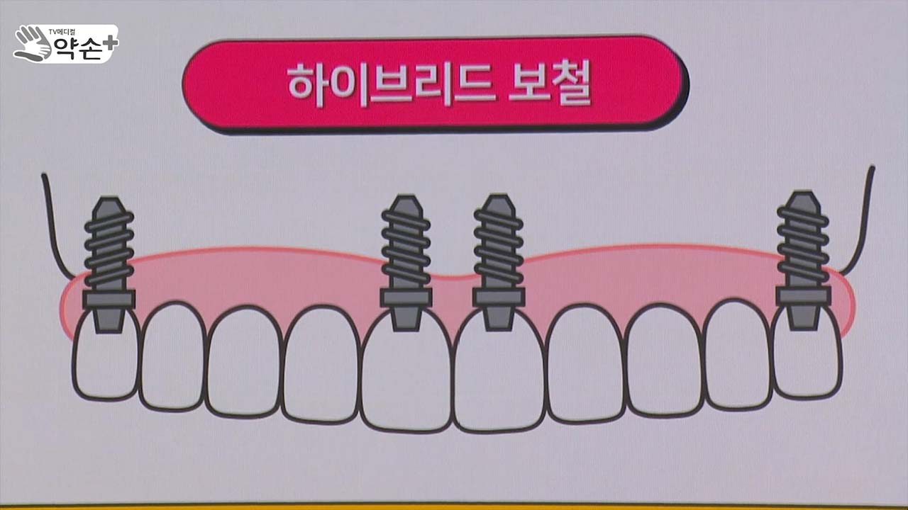 마찬가지인데 예전에는 이게 힘을 잘 못 받았어요, 국내 저작 습관을 봤을 때. 그런데 최근에는 이런 것들이 많이 발달하면서 국내분들이 먹는 음식도 소화할 만한 그런 상황까지 기술이 발달하게 된 거죠. 그러면서 한국에 점점 더 보급되고, 아직 많이 시술이 이루어지지는 않고요. 점점 더 보급이 커지고 있는 추세입니다. 하이브리드 보철 또는 해외 용어를 그대로 써서 All-on-X라는 보철 이렇게 부르고 있어요.