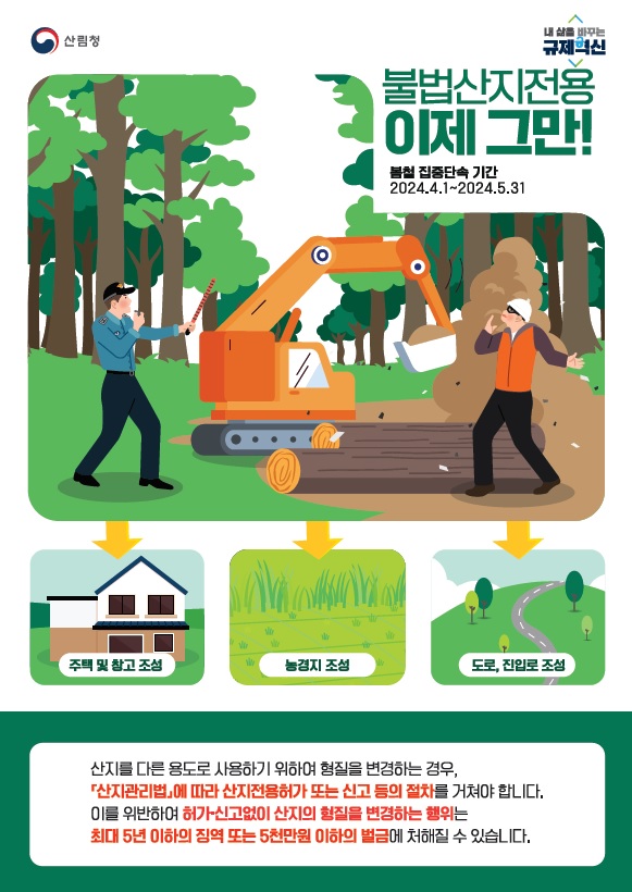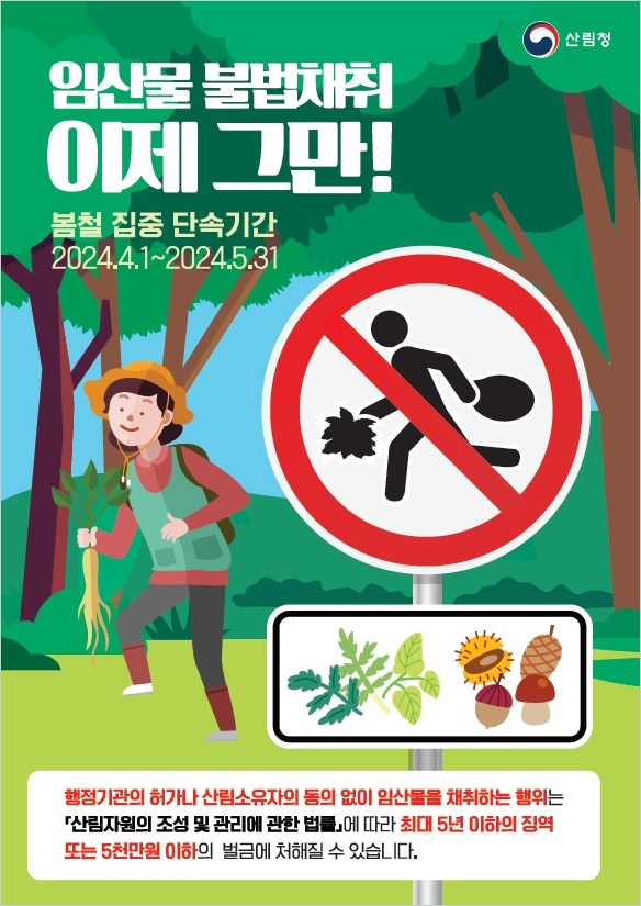 산림청이 입산객이 크게 느는 봄철을 맞아 5월까지 지자체와 합동으로 산림 내 불법 행위를 집중 단속합니다.
