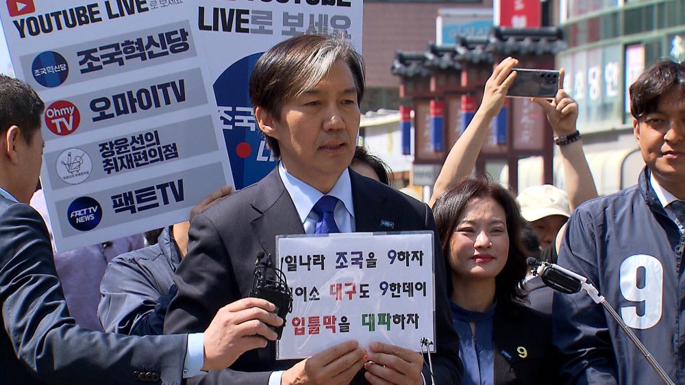 조국 조국혁신당 대표는 총선을 하루 앞둔 4월 9일 대구 동성로를 찾아 지지를 호소했습니다.