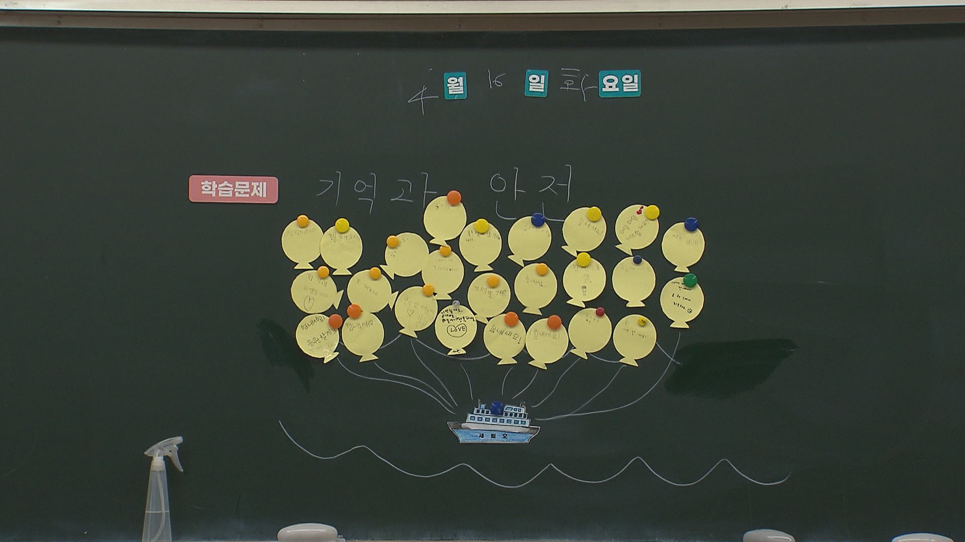 아이들은 이런 일이 되풀이되지 않기 위해 기억해야 한다는 마음을 서툰 글씨로 써 내려가며 생명과 안전에 대한 중요성을 되새겼습니다.