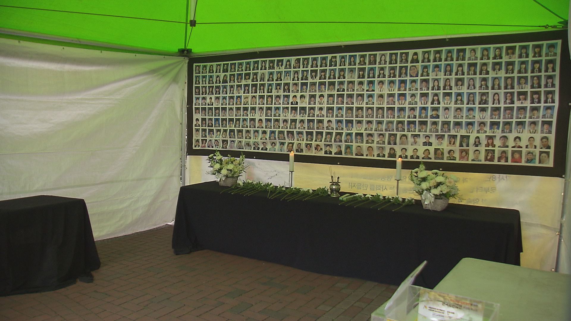 가던 걸음을 잠시 멈춘 이들은 안타깝게 희생된 304명의 사진 앞에 헌화하고 추모하면서 눈시울을 붉히기도 했습니다.