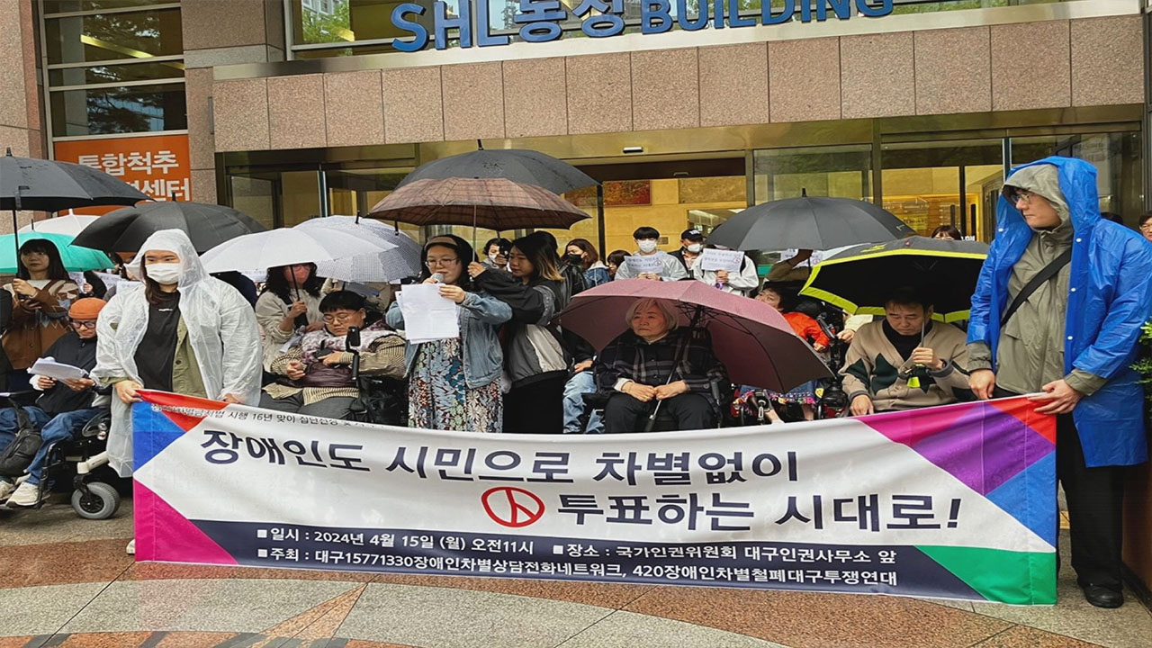 4월 20일은 장애인의 날입니다. 장애인 권리가 예전보다 나아졌다고는 하지만, 총선에서도 장애인들이 참정권을 침해당하는 사례가 있었는데요. 4월 15일 오전 11시 420장애인차별철폐대구투쟁연대(420장애인연대), 대구15771330장애인차별상담전화네트워크는 국가인권위원회 대구인권사무소 앞에서 장애인차별금지법 16년 맞이 집단 진정 및 지역사회 제언 기자회견을 열었습니다. 참정권 침해 사례가 20건이나 확인돼 진정이 이뤄졌습니다.