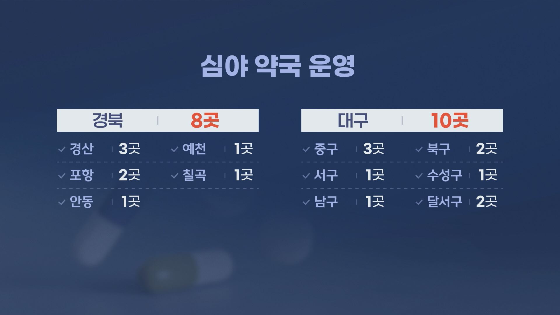 구·군 간 거리가 비교적 가까운 대구는 2013년부터 10년 넘게 심야 약국을 운영해 오고 있습니다.