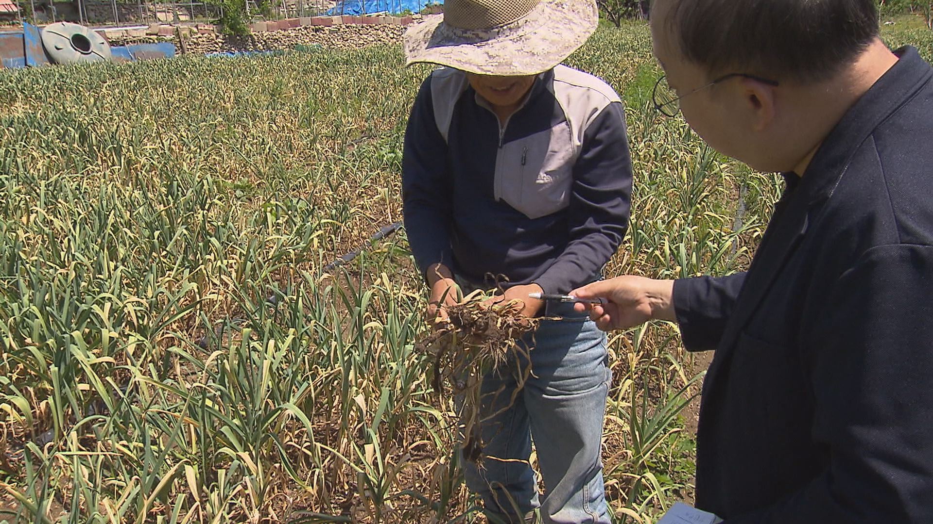 이동열 영천시 임고면(마늘 농사 10년 경력) "날이 건조하면 병든 뿌리만 상하고 마는데 비가 자주 오면 빗물을 타고 번져요. 온 밭에 지금 다 번졌잖아요"