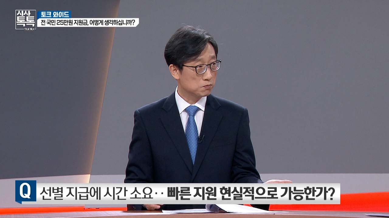 민주당 방식의 지원은 포퓰리즘일 가능성이 있다. 그러면 다음 얘기로 넘어갈 수밖에 없는 게 선별할 수 있는 선택 지원, 핀셋 지원 혹은 꼭 필요한 사람에게 지원해야 한다는 거는 많은 분이 동의하는데 지금 급한 상황에서 선별하는 기준이 어렵고 골라내기가 힘들고 그거 하다 보면 시간이 너무 빨리 가니까 힘들어서 일단 지원하자는 쪽에 설득력이 있다고 한다면 이 교수님이 그걸 반대하고 계시지 않습니까? 일괄 지원 안 된다. 그러면 골라내야 합니다. 그다음에 선별 기준도 있어야 합니다. 누구에게 어떻게 줄 것인지 그게 이른 시간 안에 가능할까요?