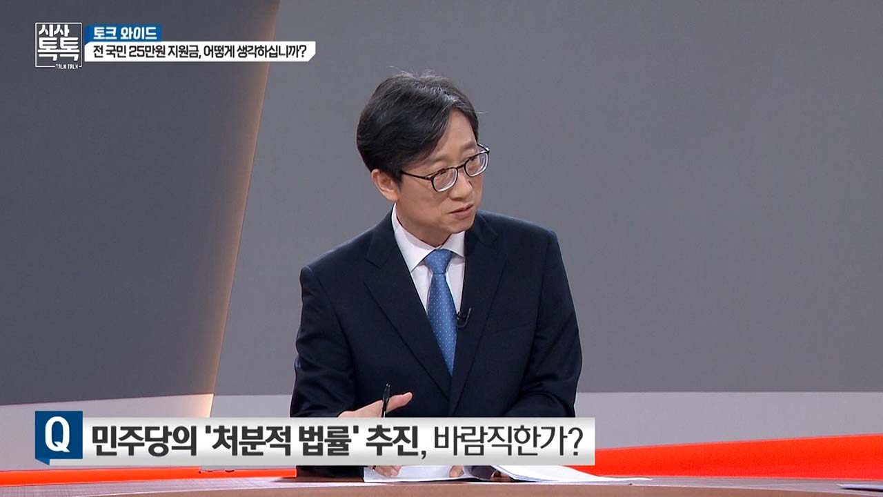 그리고 지금 민주당은 과거에 합리적인 중도 진보 노선에서 벗어나서 굉장히 교조적이고 이념적인 낡은 전 세계 어느 나라로도 하지 않는 기본소득 방식을 도입하려고 이렇게 지금 처분적 입법까지 하겠다고 나서고 있는 이런 극단적인 상황에서 여야가 충돌하게 되면 대한민국은 굉장히 불행해지는 것 아니겠습니까?