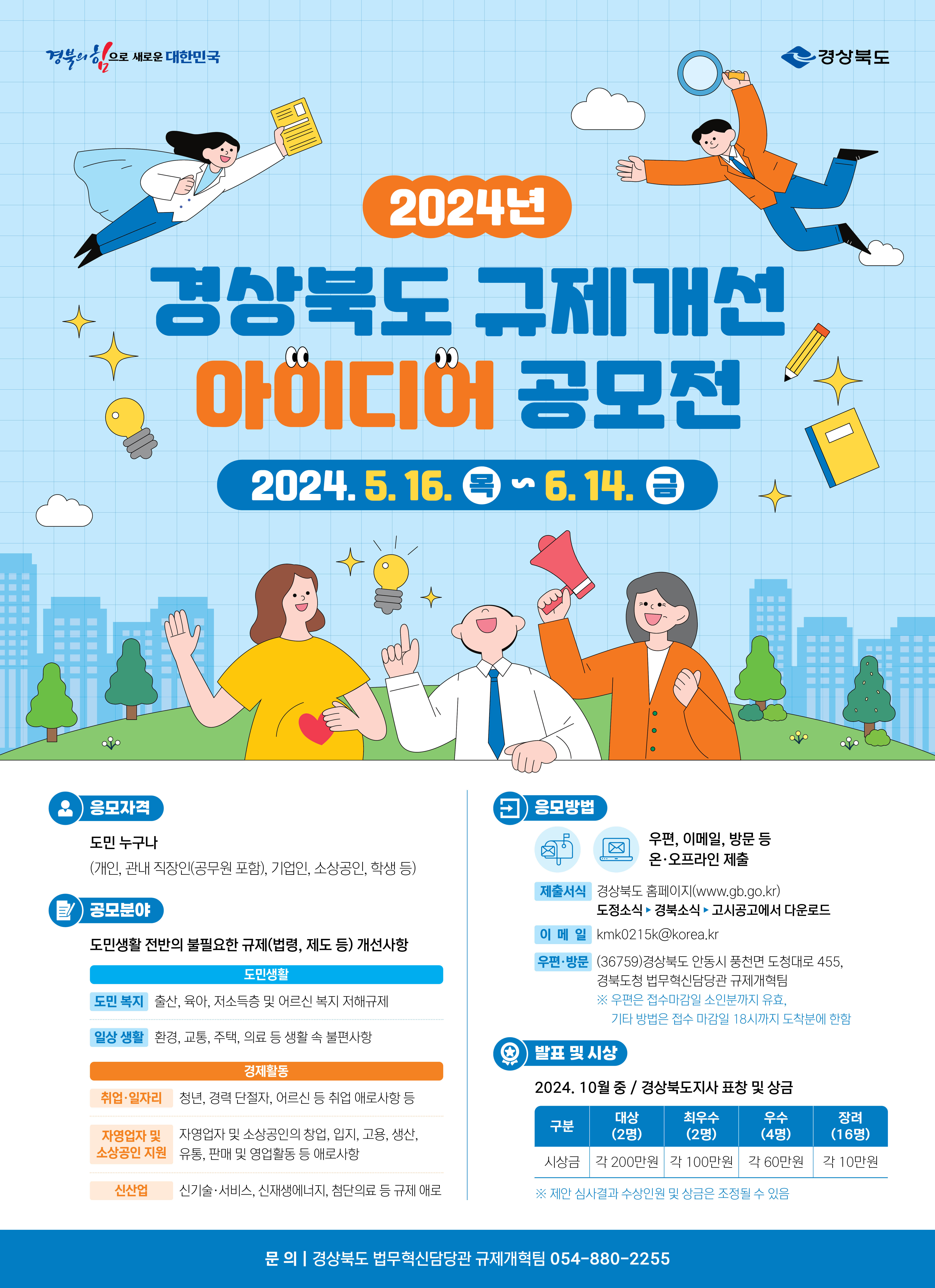 경상북도는 불필요한 규제와 걸림돌이 되는 규제를 개선하기 위해 '2024 경상북도 규제 개선 아이디어'를 공모합니다.