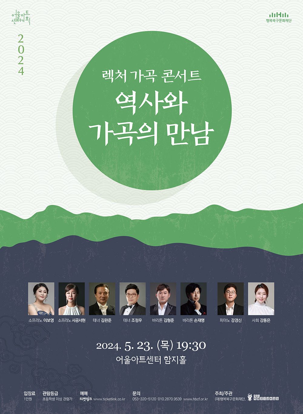 행복북구문화재단은 오는 5월 23일 저녁 7시 30분에 '2024 렉처 가곡 콘서트-역사와 가곡의 만남'을 엽니다.