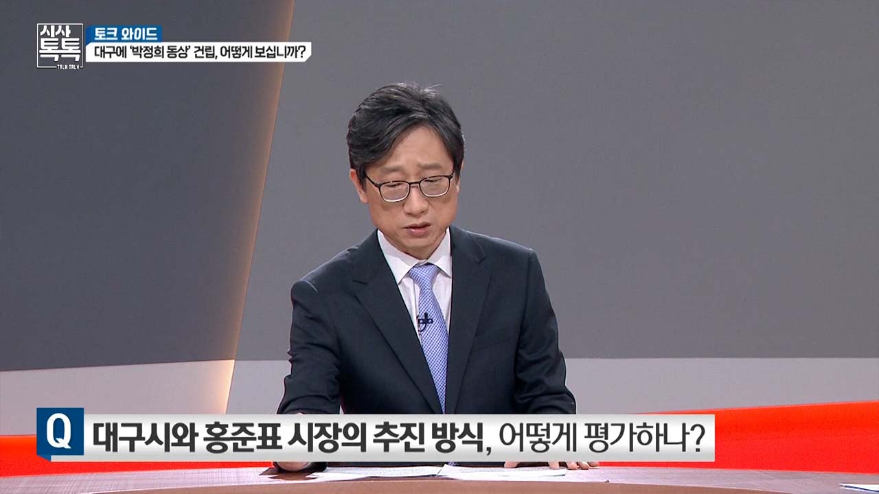 자, 오늘 김형기 박정희 대통령 동상 건립추진위원회 단장, 임성종 박정희우상화사업 반대 범시민운동본부 집행위원장 두 분 모시고 최근에 논란이 되는 박정희 동상 건립 문제에 대해서 살펴봤습니다. 두 분 다 대구를 사랑하시는 마음에서 나온 좋은 토론이었다고 생각합니다. 오늘 토론 여기서 마치겠습니다. 고맙습니다.