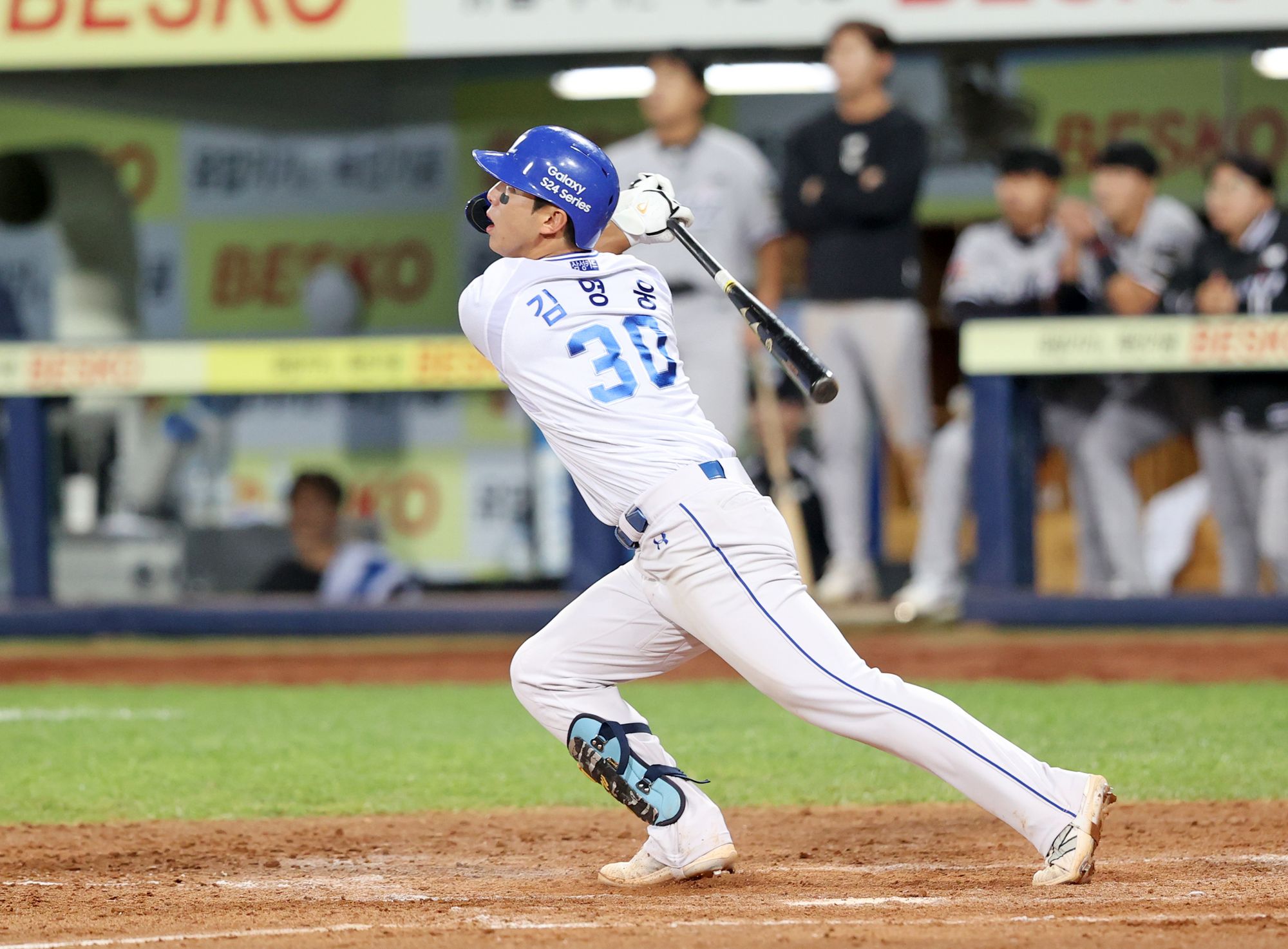 선두타자 천성호를 볼넷으로 내보낸 김재윤은 도루까지 허용했고, 이 과정에서 설상가상으로 김영웅이 도루저지 과정에서 부상으로 교체되는 불운을 겪습니다.