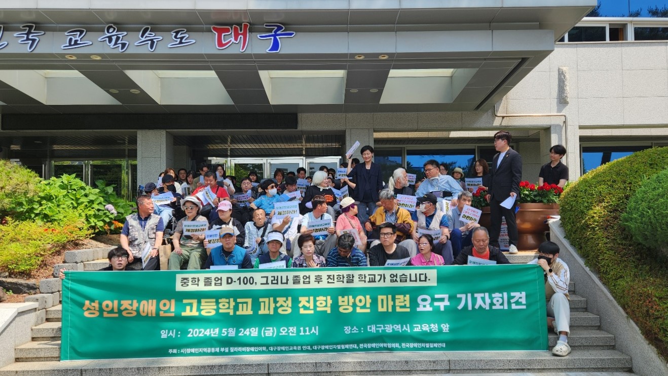 질라라비 장애인야간학교와 대구장애인교육연대 등 장애인 단체 활동가들이 5월 24일 대구시교육청 앞에서 기자회견을 열고 성인 장애인이 고등학교 과정 진학할 수 있도록 방안을 마련해달라고 촉구했습니다.