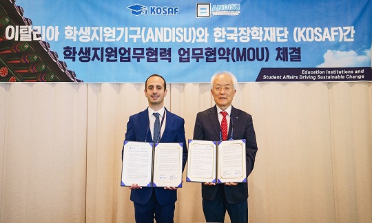 한국장학재단은 '2024 국제학생지원연합(IASAS) 글로벌 서밋' 행사에서 양국 학생지원을 위해 이탈리아 국립 학업지원협회(ANDISU)와 업무협약을 맺었다고 밝혔습니다.