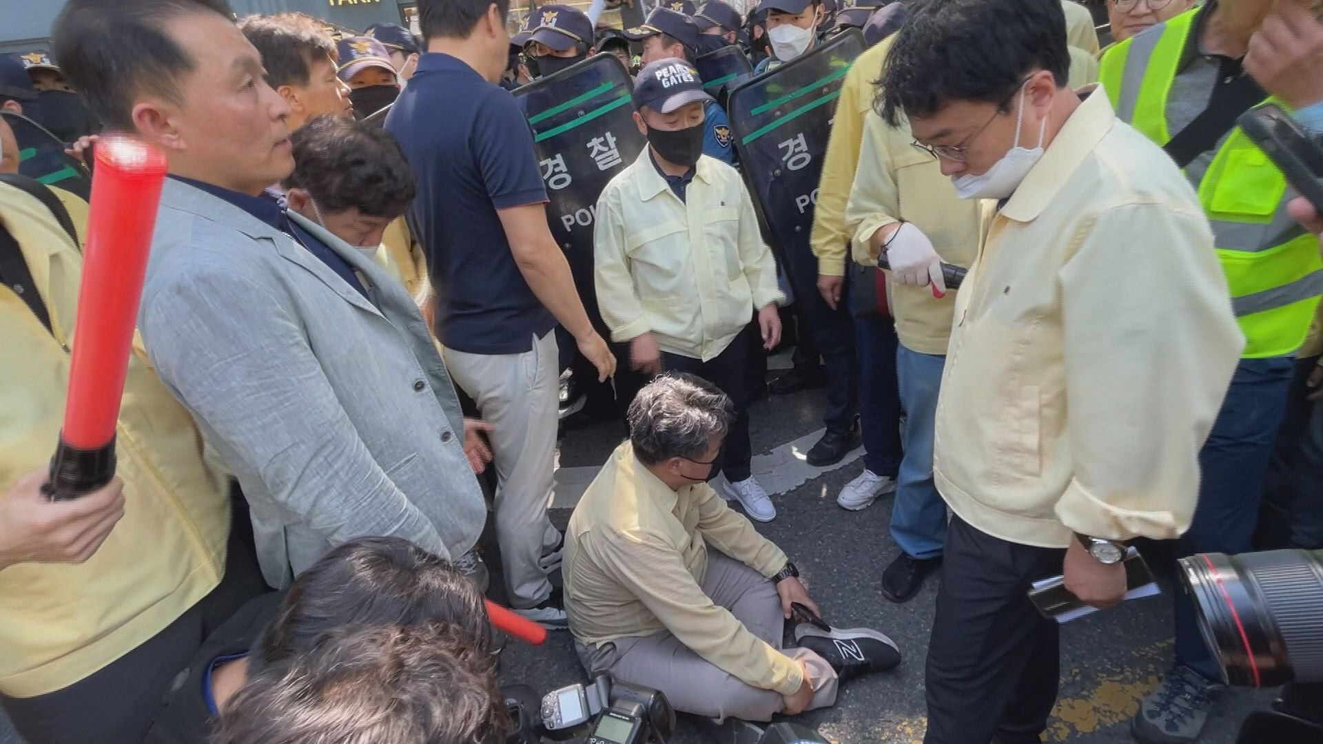 1시간가량 그렇게 뒤엉켜 소동이 벌어졌다가 대구시 측에서 해산하며 일단락됐는데요.