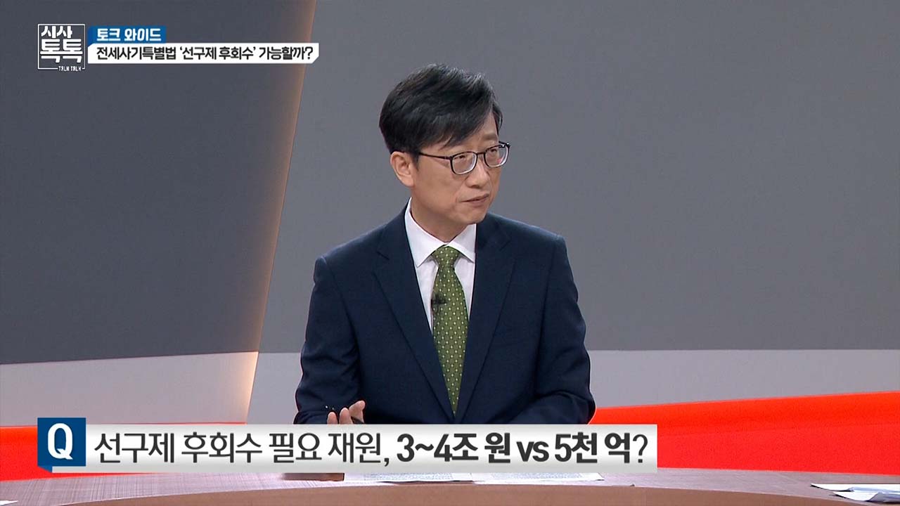모든 정책 집행하는 데 돈 많이 들죠. 돈 드는데 우리가 요구하고 있는 것은 얼마나 시급한 일인가, 그 돈을 집행하는 데 그만한 가치가 있는가를 고민해야 하는데, 안타까운 것은 세상을 등지고 있는 분들이 나오는 와중에도 ‘돈 많이 든다’예요. 국토교통부는 당장 돈 3조, 4조 얘기합니다. 시민단체에서는 선구제하는데 그렇게 안 든다. 급한 불 끄는 데는 5,000억이면 충분하다. 그래서 해볼 만한 일이다. 이렇게 얘기하는데, 실제로 예산이 드는 문제에서는 비용이 얼마나 들까, 투입하는 재정이 얼마나 드는가 하는 건 집행하는 데 있어서 중요한 요소가 아니겠습니까? 이 교수님 보시기에는 어느 쪽 말이 설득력 있어 보이십니까?