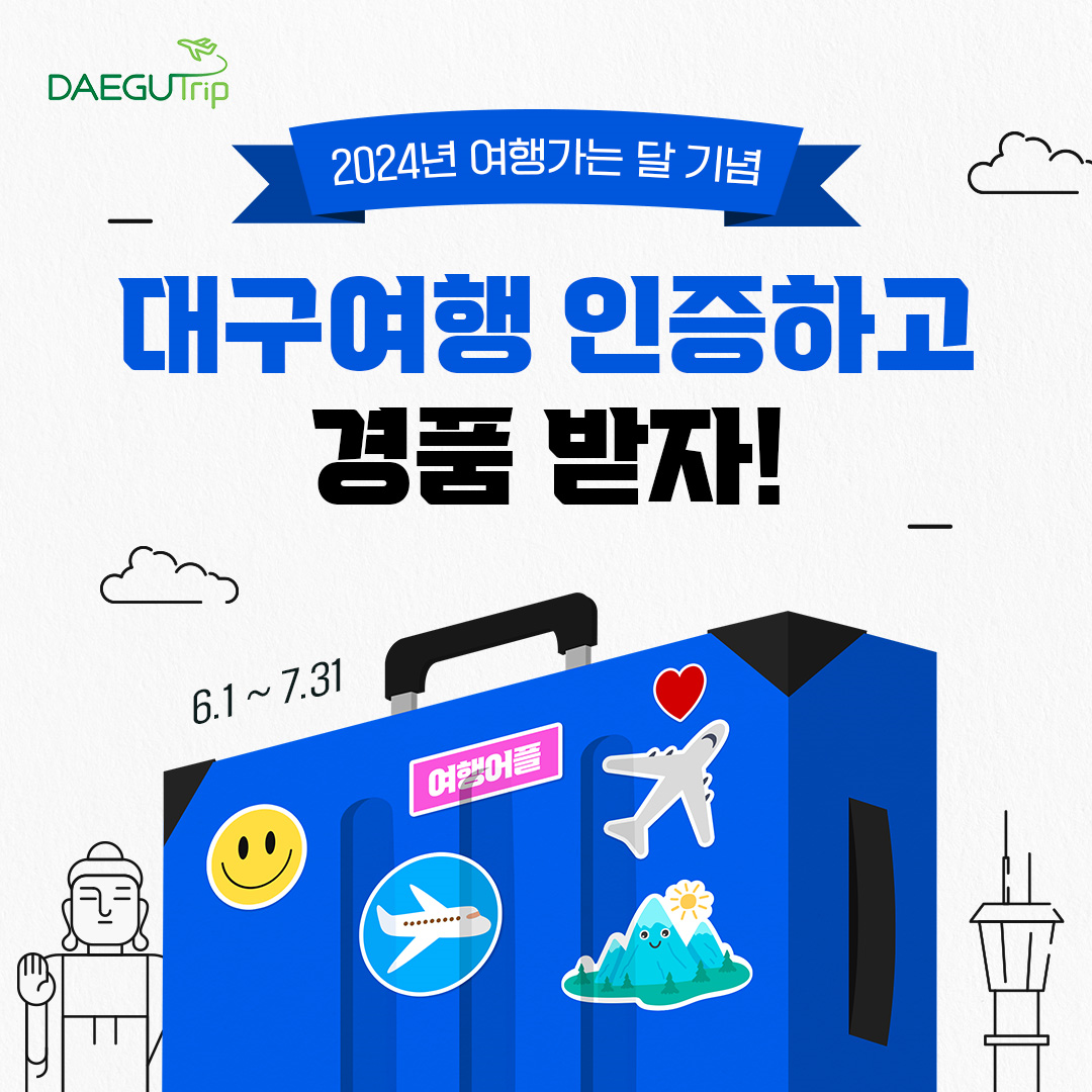 대구문화예술진흥원은 '6월 여행 가는 달'을 맞아 대구를 찾는 관광객에게 여행 인증 이벤트를 합니다.