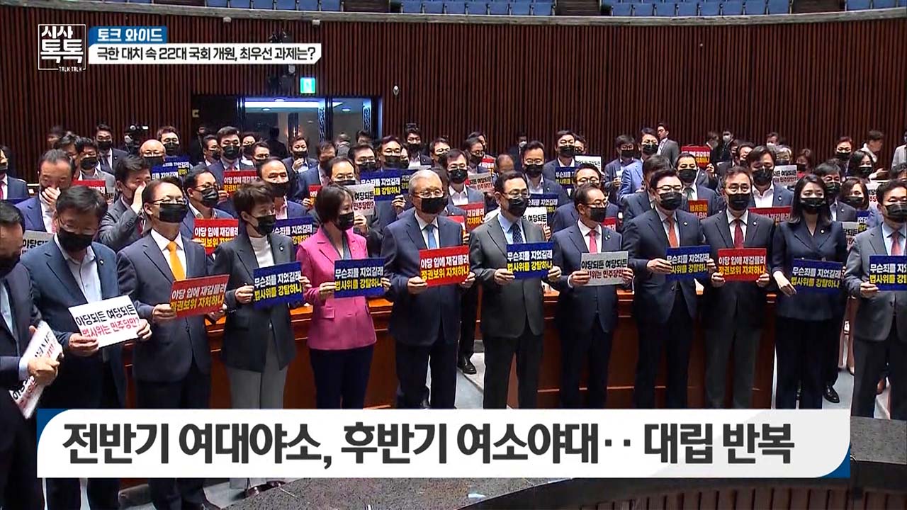 21대 국회 전반기는 여대야소, 후반기는 여소야대 구도가 되면서 대립이 이어졌고 '협치'는 사실상 실종됐습니다. 출발부터 험난했습니다. 상임위 배분을 두고 당시 여야가 대립하면서 임기 시작을 지나, 개원 법정 시한도 넘기고 48일 늦은 7월이 돼서야 '지각 개원'했습니다.