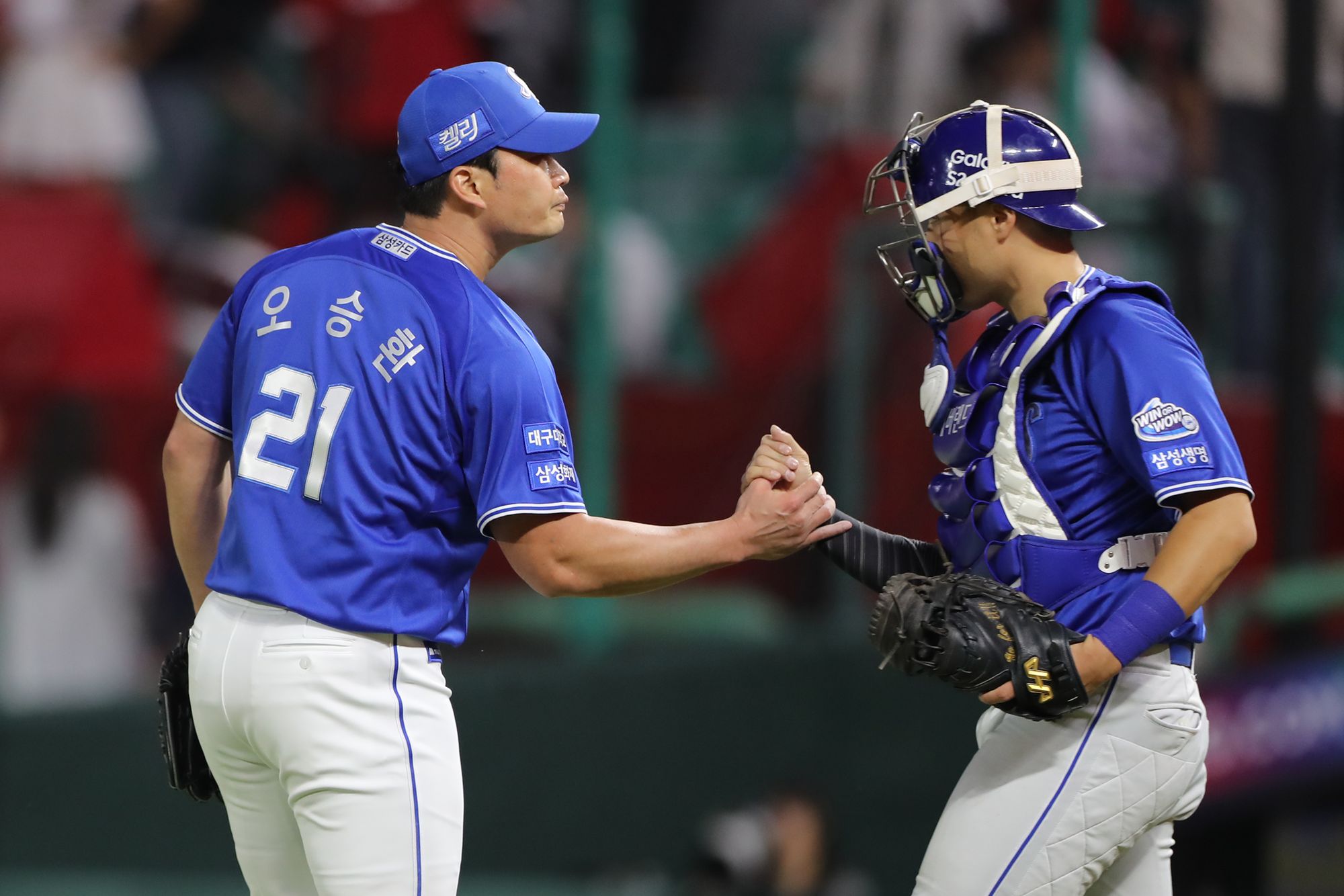 이어나온 우완 이승현이 1이닝을 책임지며 행운의 승리투수가 됐고, 무실점을 지킨 김재윤이 홀드, 오승환은 세이브를 기록합니다.