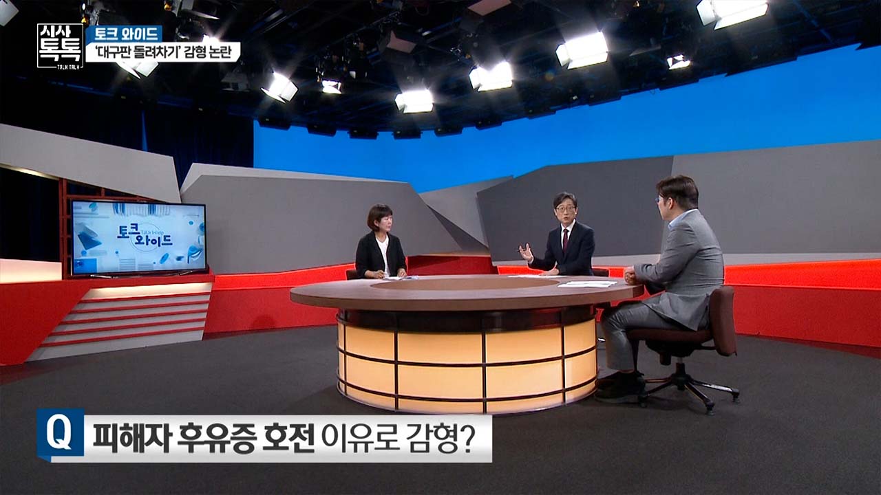 이번 주 시사톡톡에서는 '대구판 돌려차기' 감형을 둘러싼 논란을 집중적으로 짚어보겠습니다. 먼저 오늘 나와주신 두 분 패널 소개하겠습니다. 송경인 대구여성의전화 대표 나오셨습니다. 어서 오십시오.