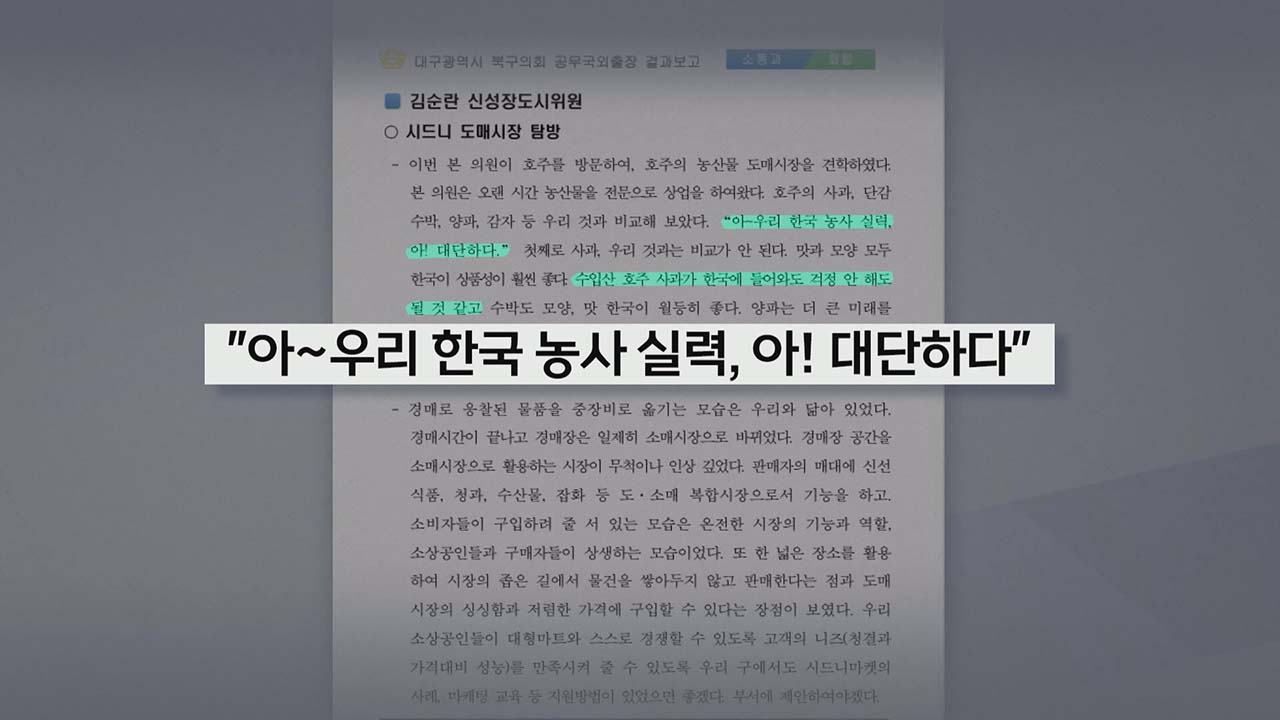 지난 4월, 대구 북구의회 소속 의원 7명과 사무직원 4명 등 11명은 7일간 호주로 공무 국외 연수를 떠났습니다.