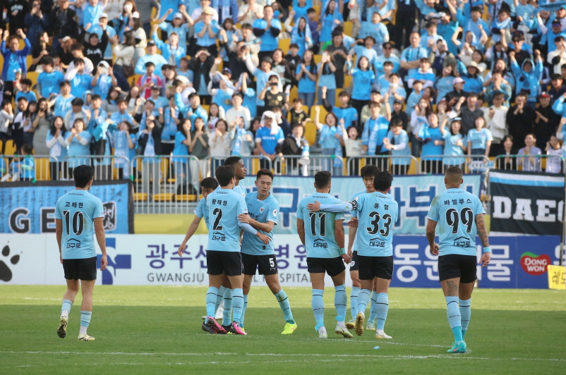 대구와 승점이 같은 인천과 제주가 이번 라운드 모두 패배하며 8위와 10위에 자리했고, 스플릿 A에 해당하는 6위를 기록 중인 광주FC 역시 대전에 지며 승점 22점에 그쳐, 다음 라운드 대구는 승리를 통해 산술적으로 순위 역전도 가능한 상황입니다.