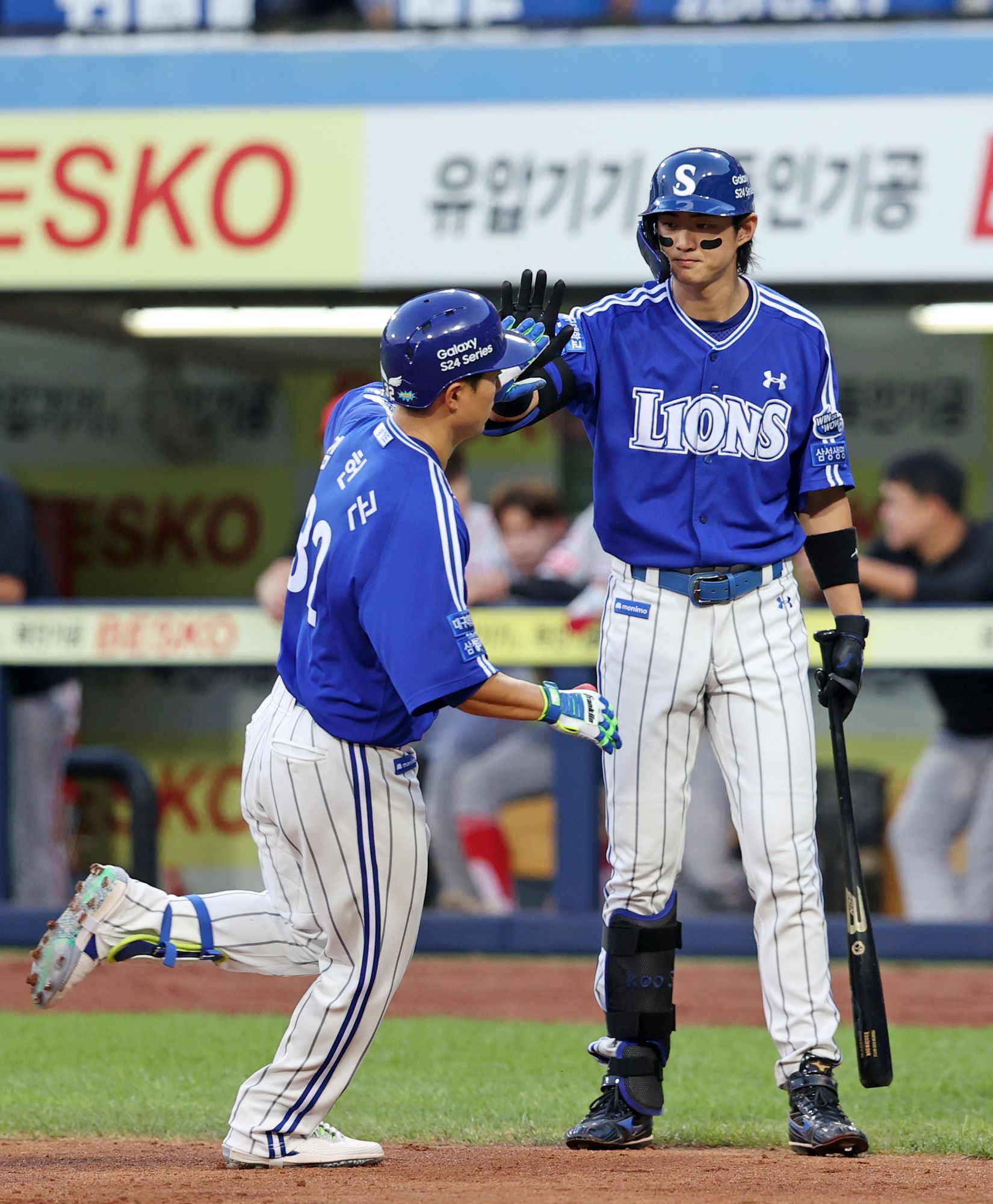 1회말부터 선두타자 김지찬의 출루로 선취점을 뽑은 삼성은 1-1로 동점을 이룬 3회말 김헌곤과 구자욱의 연속타자 홈런으로 연패 탈출에 희망을 쏘아올립니다.