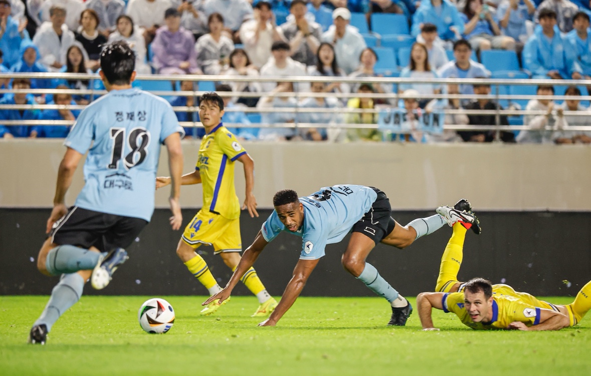 비와 함께 펼쳐진 대팍에서의 K리그 100번째 경기는 득점 없는 무승부로 마무리됐습니다.