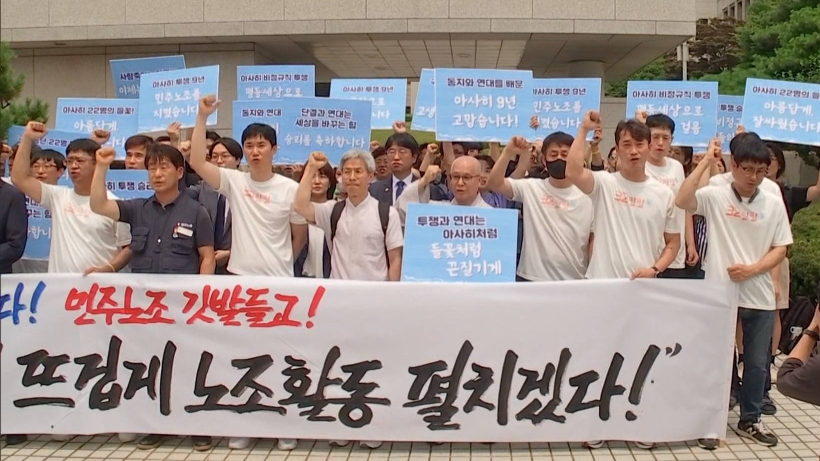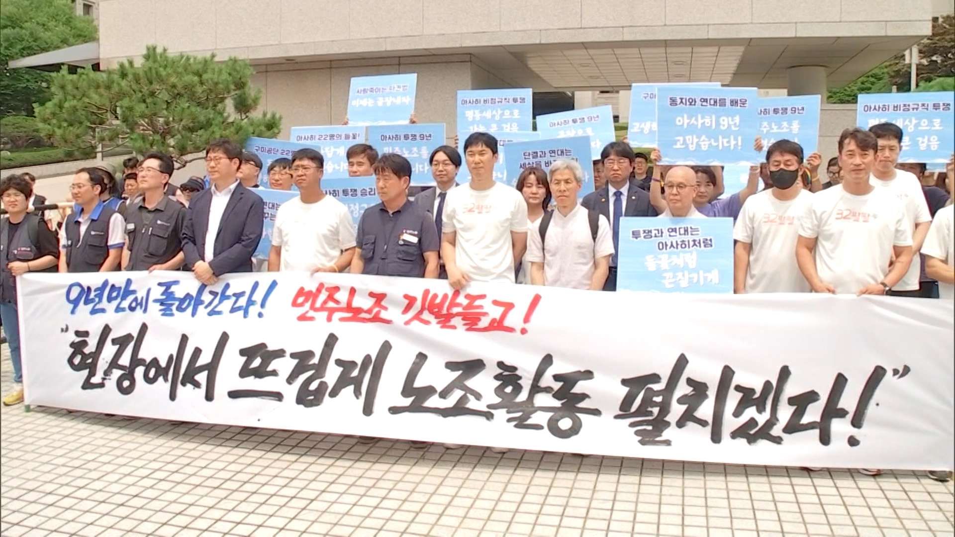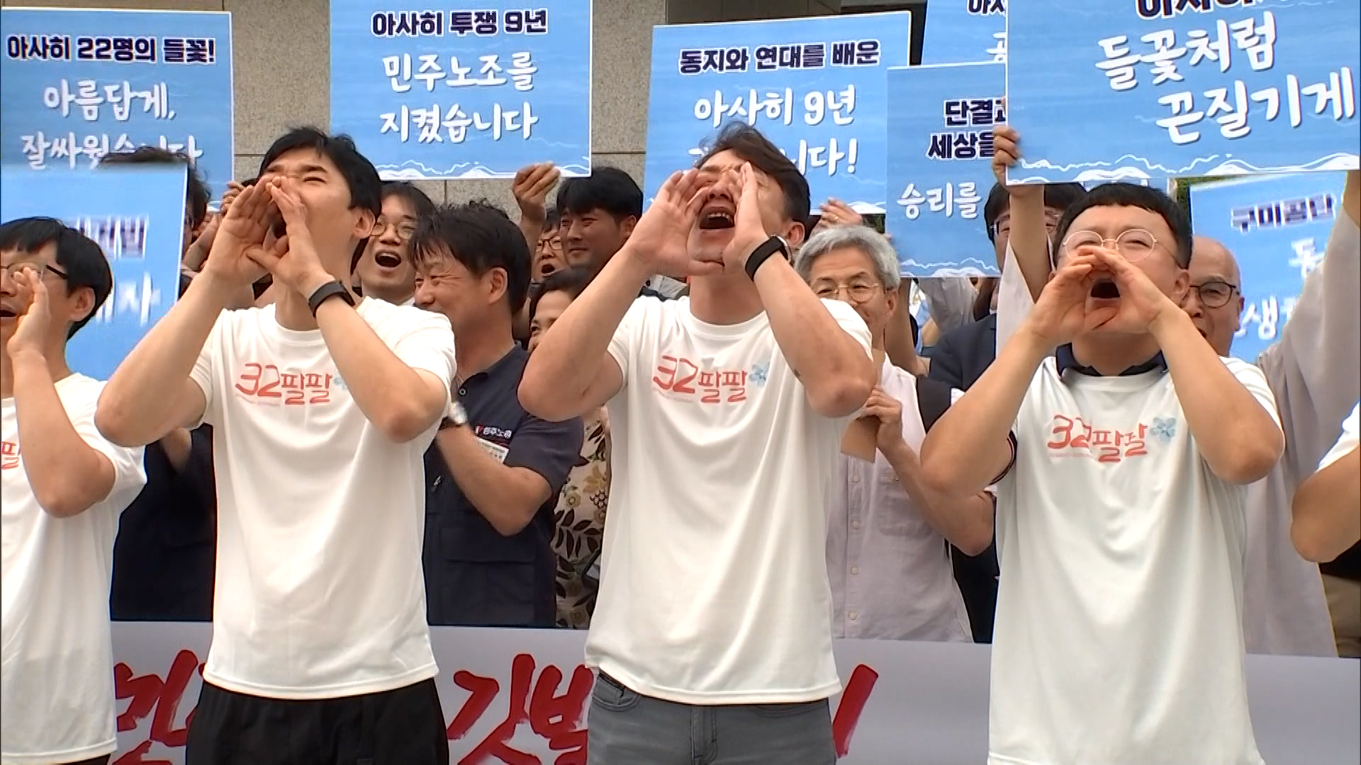 차헌호 금속노조 아사히비정규직지회장은 "불법 파견이 범죄라는 것이 그대로 드러나는 것이 화성의 아리셀 참사 아닙니까? 2막으로, 당당하게 현장으로 돌아가서 노동조합 활동 열심히 동지들과 함께하겠습니다"고 소감을 밝혔습니다.