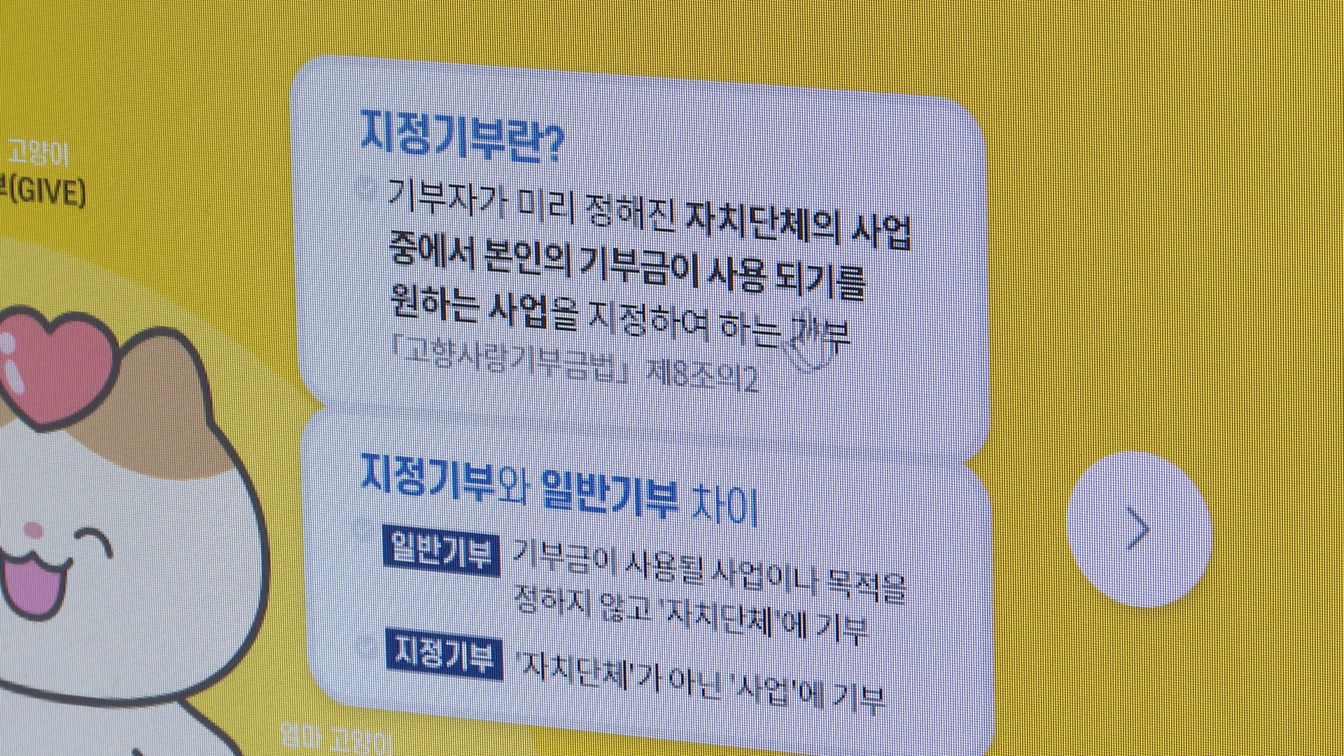 2024년 6월 4일부터는 기부자가 내가 낸 기부금을 어디에 쓰도록 할지 정할 수 있는 '지정 기부'도 도입됐습니다.