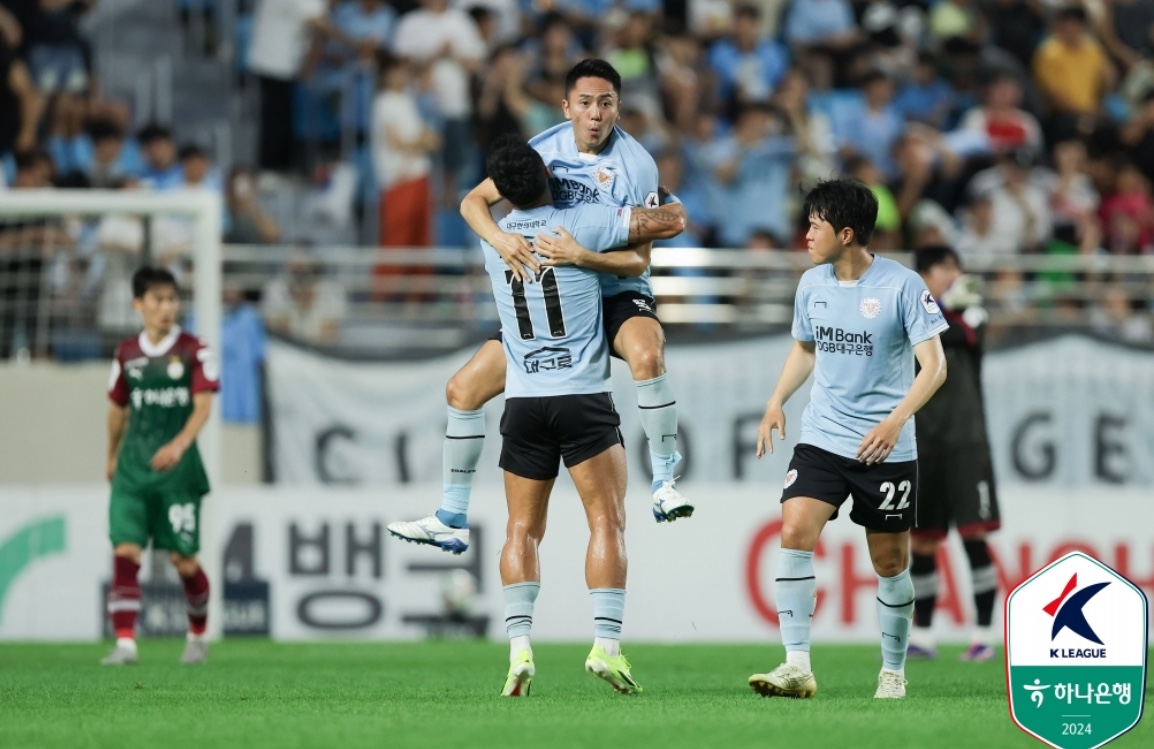 27일 저녁 DGB대구은행파크에서 펼쳐진 하나은행 K리그1 2024 대전하나시티즌과의 25라운드 홈 경기에서 대구는 전반부터 활발한 공격 전개를 펼치더니, 경기 시작 15분 만에 세징야의 크로스를 요시노가 헤더로 마무리하며 앞서갑니다.